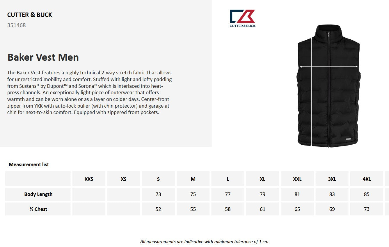 Cutter & Buck Baker Men's Padded Body Warmer | Lightweight | Stretch | 4 Colours | S-4XL