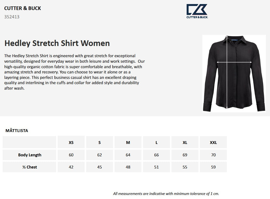 Cutter & Buck Hedley Ladies Stretch Shirt | Breathable Organic Cotton | Black or White | XS-2XL